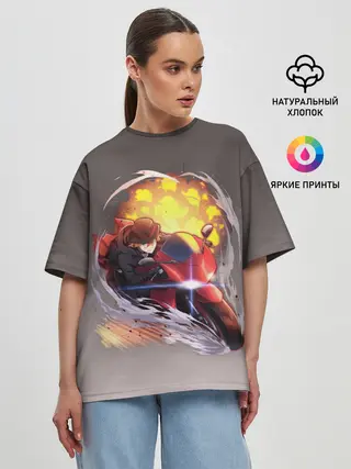 Женская футболка оверсайз / Чуя Накахара на мотоцикле взрыв