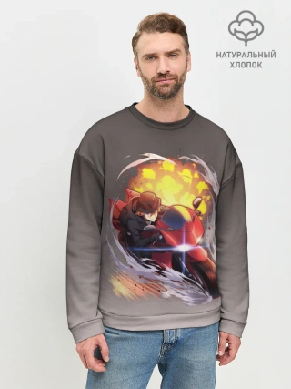 Мужской свитшот базовый / Чуя Накахара на мотоцикле взрыв