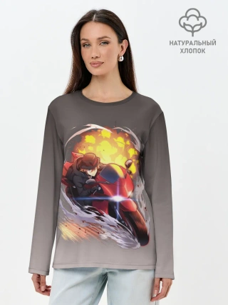 Лонгслив женский. Хлопок / Чуя Накахара на мотоцикле взрыв