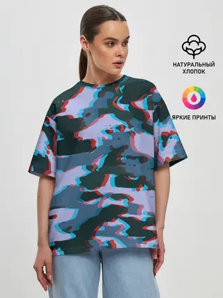 Мужская футболка оверсайз / BLACK RED CAMO | RED MILLITARY