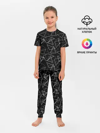 Детская пижама с брюками / Черно-белый геометрический