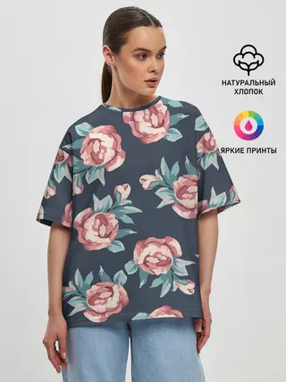 Женская футболка оверсайз / Розы