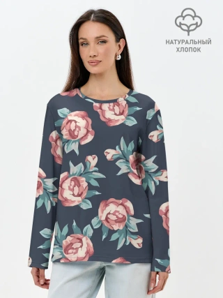 Лонгслив женский. Хлопок / Розы