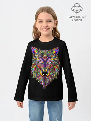 Детский лонгслив / Разноцветный Волк