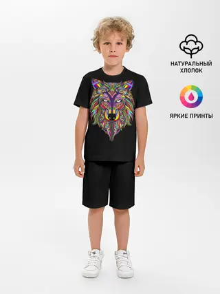 Детская базовая футболка / Разноцветный Волк