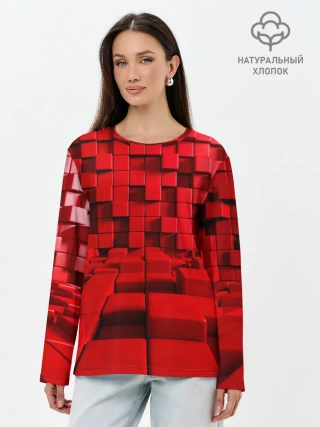 Лонгслив женский. Хлопок / 3D кубики