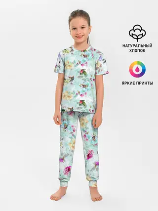 Мужская футболка оверсайз / Тропические цветы и узоры