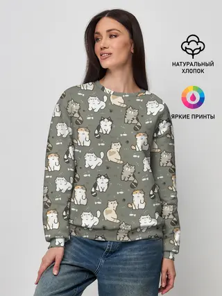 Женский свитшот / Кошечки с рыбками