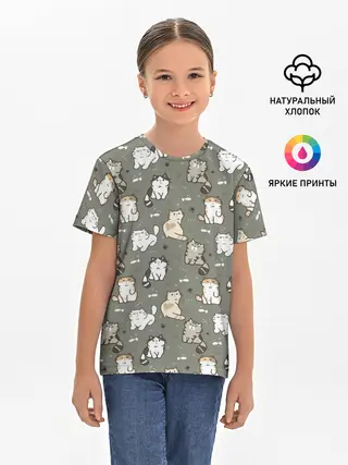 Детская базовая футболка / Кошечки с рыбками