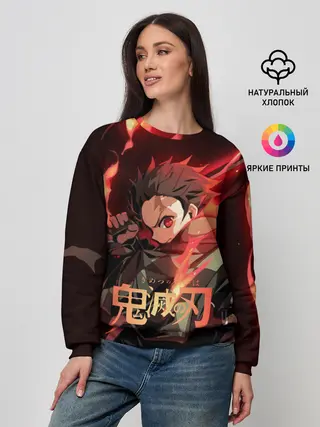 Лонгслив женский. Хлопок / Клинок рассекающий демонов