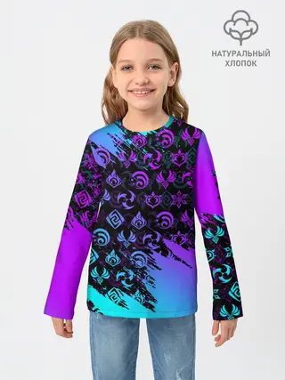 Детский лонгслив / GENSHIN NEON PATTERN SYMBOL / НЕОН ЭМБЛЕМЫ