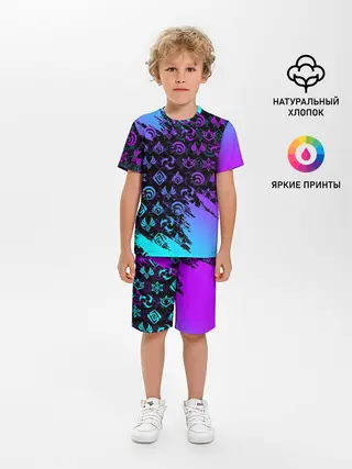 Детская пижама с шортами / GENSHIN NEON PATTERN SYMBOL / НЕОН ЭМБЛЕМЫ