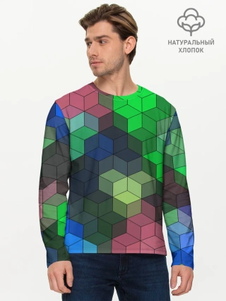 Мужской лонгслив базовый / Разноцветный геометрический уз