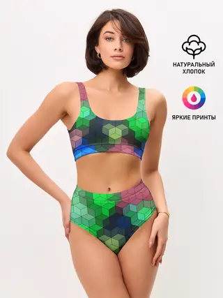 Женские топ и трусы / Разноцветный геометрический уз