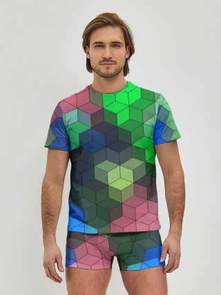 Мужские трусы с футболкой / Разноцветный геометрический уз