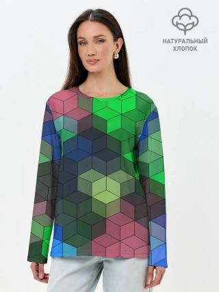 Лонгслив женский. Хлопок / Разноцветный геометрический уз