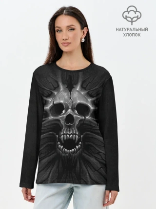 Лонгслив женский. Хлопок / ЧЕРЕП С КЛЫКАМИ