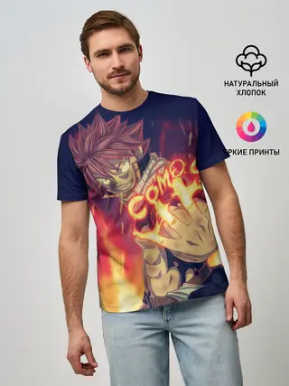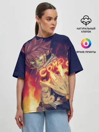 Мужская футболка оверсайз / Нацу и Хеппи из Хвоста Фей