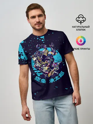 Мужская футболка оверсайз / Дзётаро синие брызги