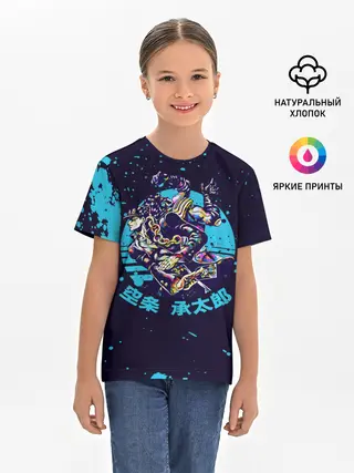 Детская базовая футболка / Дзётаро синие брызги