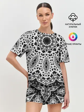 Женская пижама с шортами / Черно-белый орнамент