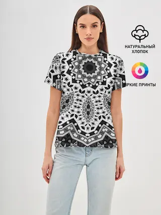 Женская базовая футболка / Черно-белый орнамент