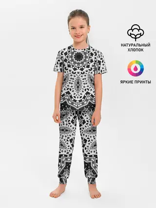 Детская пижама с брюками / Черно-белый орнамент