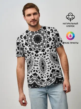 Мужская базовая футболка / Черно-белый орнамент