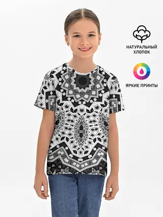 Детская базовая футболка / Черно-белый орнамент