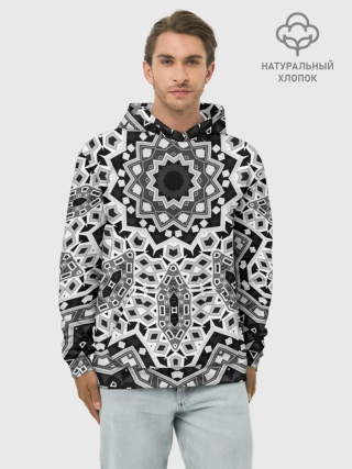 Худи мужской база хлопок / Черно-белый орнамент