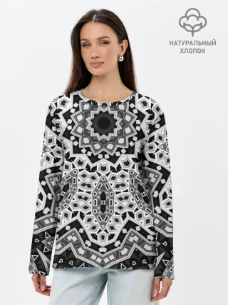 Лонгслив женский. Хлопок / Черно-белый орнамент
