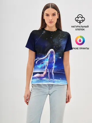 Женская футболка оверсайз / Animegirl Night Sea