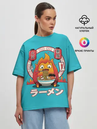 Женская футболка оверсайз / Calcifer & ramen