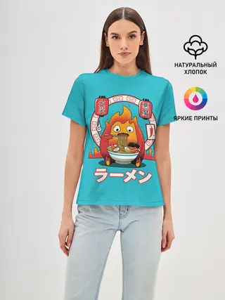 Женская базовая футболка / Calcifer & ramen