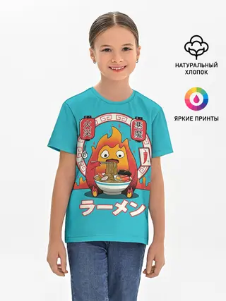 Детская базовая футболка / Calcifer & ramen