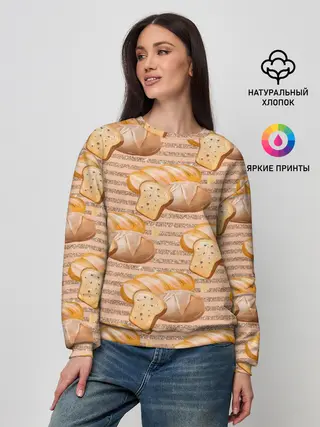 Лонгслив женский. Хлопок / Выпечка - хлеб и булочки