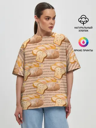 Женская футболка оверсайз / Выпечка - хлеб и булочки