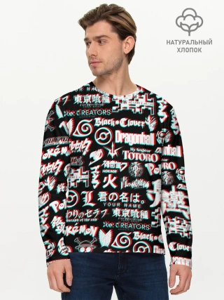 Мужской лонгслив базовый / ЛОГО АНИМЕ ГЛИТЧ