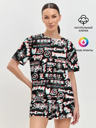 Женская пижама с шортами / ЛОГО АНИМЕ ГЛИТЧ