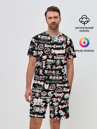 Мужской костюм с шортами / ЛОГО АНИМЕ ГЛИТЧ