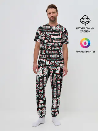 Мужская пижама с брюками / ЛОГО АНИМЕ ГЛИТЧ