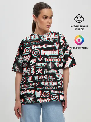 Женская футболка оверсайз / ЛОГО АНИМЕ ГЛИТЧ