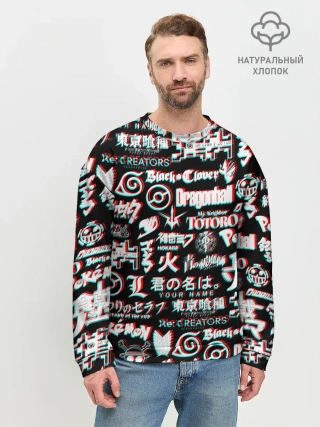 Мужской свитшот базовый / ЛОГО АНИМЕ ГЛИТЧ