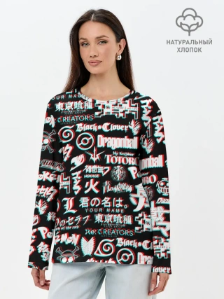 Лонгслив женский. Хлопок / ЛОГО АНИМЕ ГЛИТЧ
