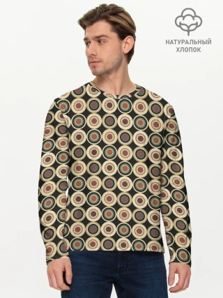 Мужской лонгслив базовый / Абстракция из бежевых и зеленых кругов