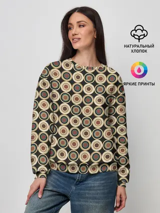 Женский свитшот / Абстракция из бежевых и зеленых кругов