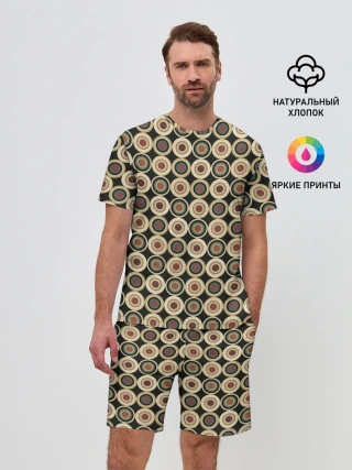 Мужской костюм с шортами / Абстракция из бежевых и зеленых кругов