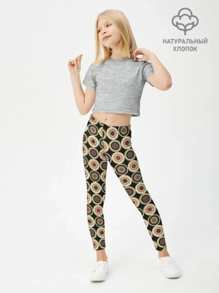 Леггинсы для девочки / Абстракция из бежевых и зеленых кругов