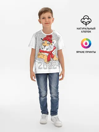 Детская базовая футболка / Тигр в красной шапке