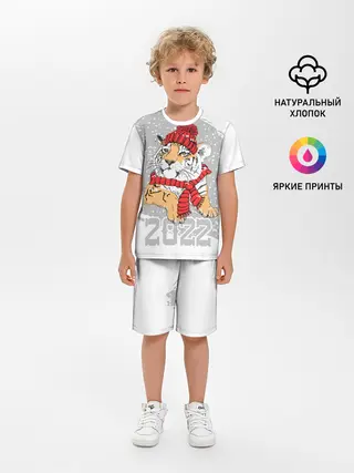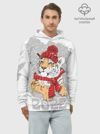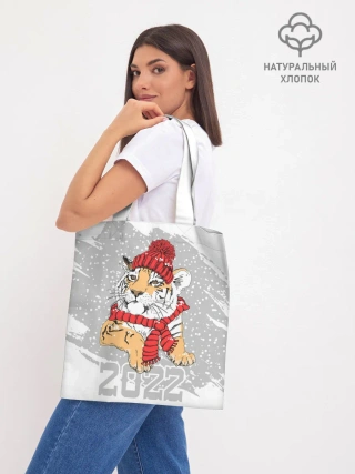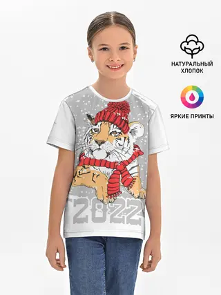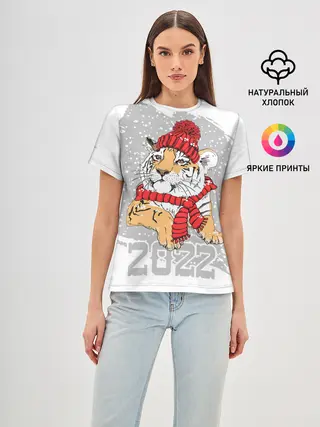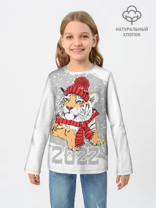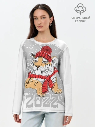 Лонгслив женский. Хлопок / Тигр в красной шапке